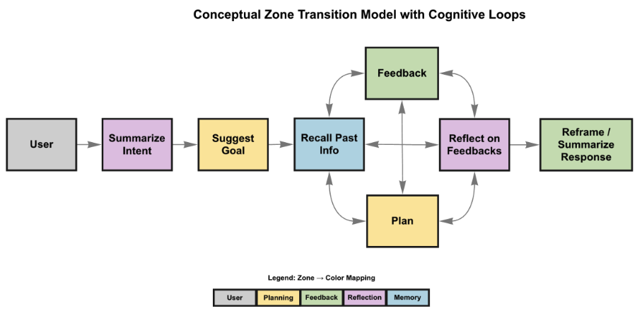 - Tagging: Assigns cognitive zones (e.g., Planning, Reflection, Feedback, Memory) to assistant messages.